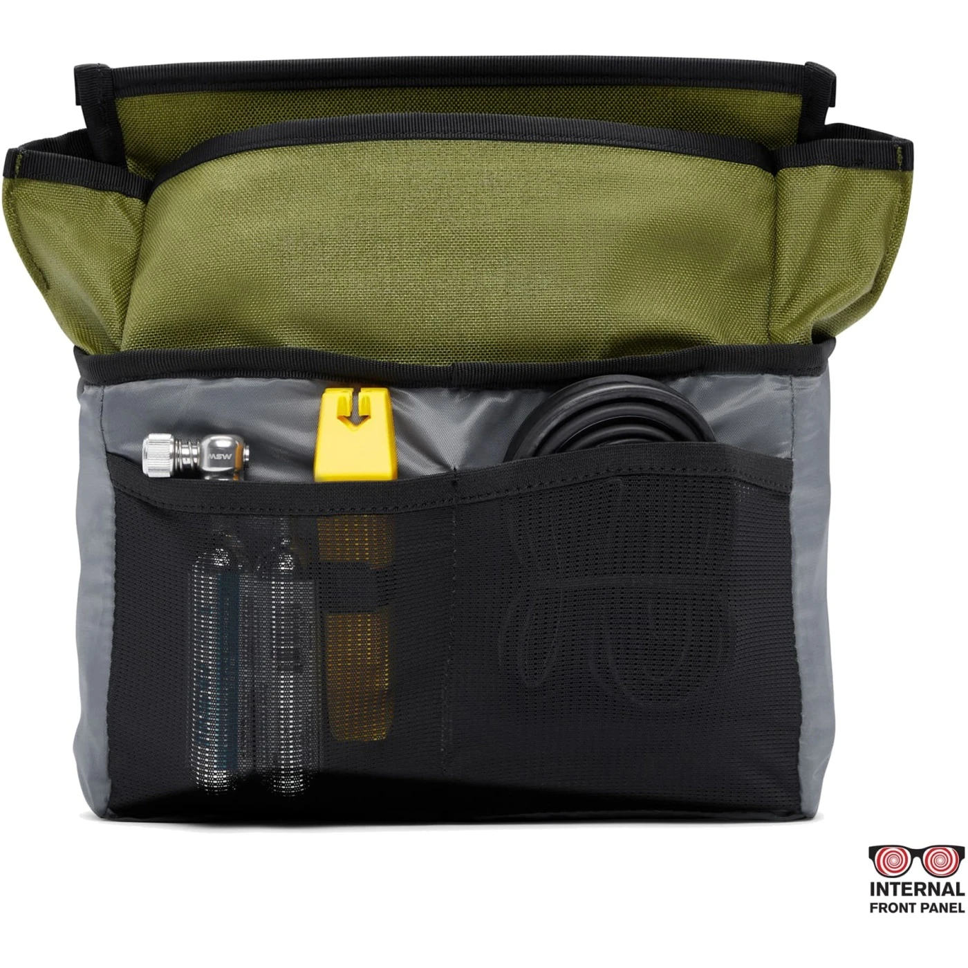- Two internal mesh storage pockets