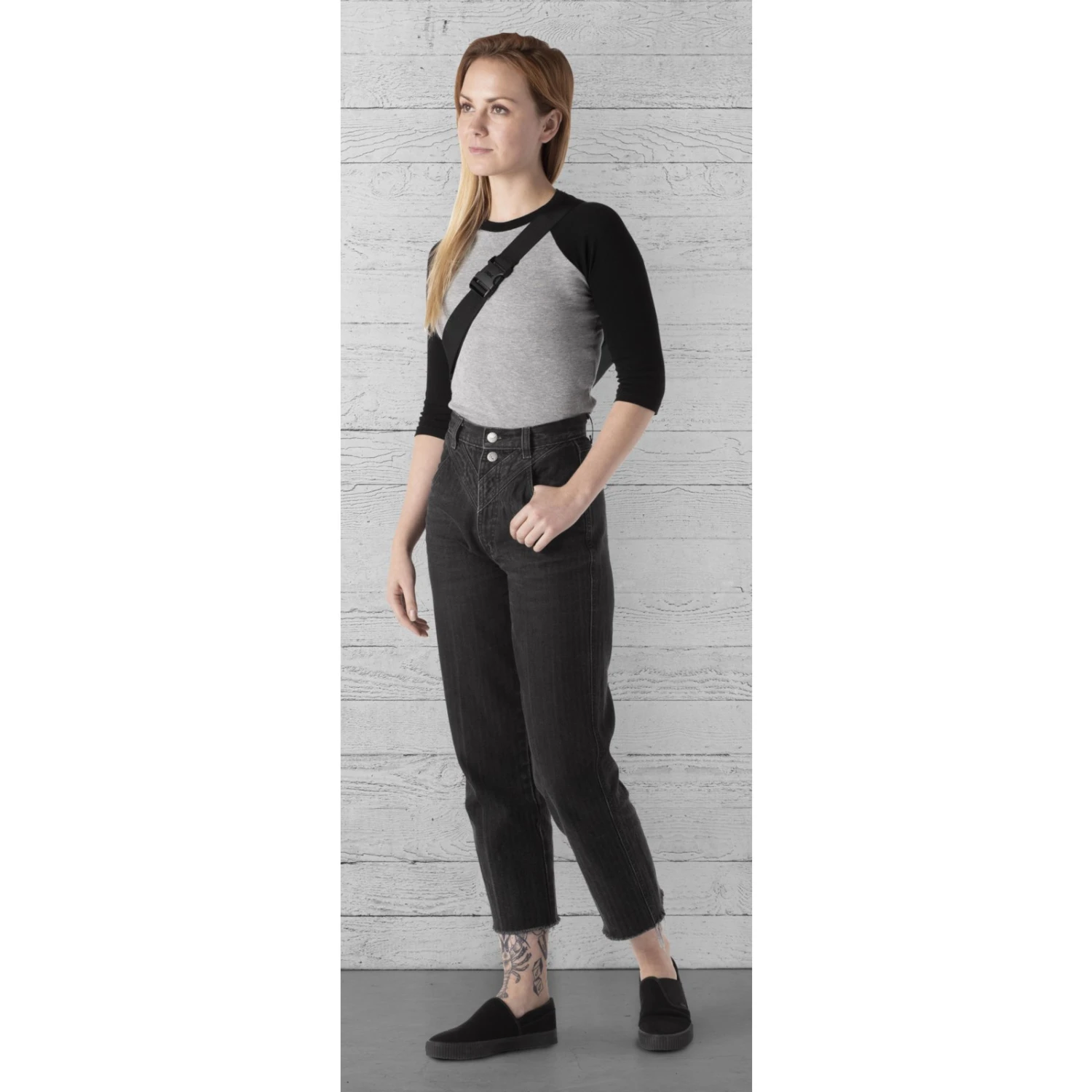 - Stowable waist or crossbody strap