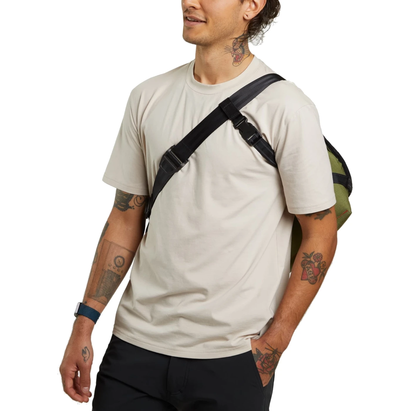 - Tough 5-bar webbing shoulder strap